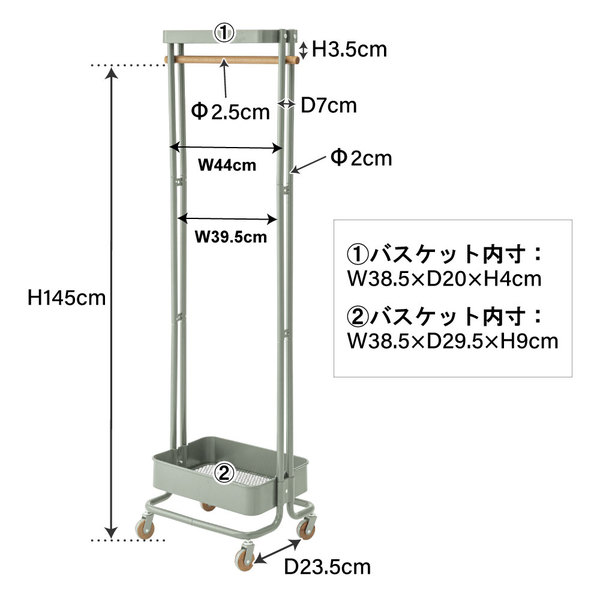 静的耐荷重:ハンガー:5kg 棚:5kg