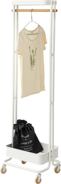 キャスター付き ハンガーワゴン 北欧風 棚付 衣類収納 収納家具シリーズ“Sylph” ホワイト 白 PW55WH